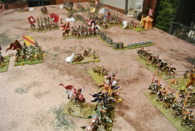 Na flankach, obaj przegrupowywaliśmy nasza kawalerię. Jeden z moich oddziałów Stradioti, źle zrozumiał rozkaz i ruszył do ataku. Udało mu się odepchnąć oddział lekkiej jazdy cesarskiej i ich kopijników. Ten atak poskutkował w lekkim zdezorganizowaniu prawej imperialnej flanki. Jednakże Michael zastawiał pułapkę na moich Gendarmes. Oba bloki pikinierskie przesunął na flanki. Liczył na to, że moja kawaleria rozbije się o te bloki i to da mu przewagę, by osiągnąć zwycięstwo. Przewidziałem to, ale zdecydowałem, że przy małej dozie szczęścia będę mógł wyjść zwycięsko z tej pułapki.