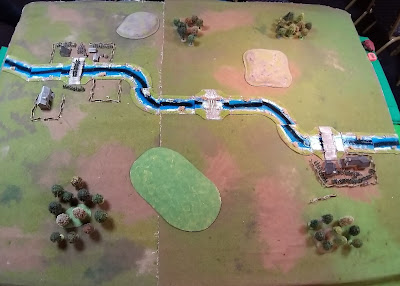 Na rzece znajdowały się 3 przeprawy. Dwie z nich zostały wcześniej zajęte przez pierwsze brygady obu sił. Jedynie bród na środku pozostawał niezajęty. By wygrać grę trzeba było być w posiadaniu większej liczby przepraw na jej końcu. Po rozstawieni sił początkowych musieliśmy w sekrecie przygotować plan wejścia pozostałych sił. Razem z Peterem, zgodziliśmy się rzucić 3 nasze brygady piechoty przeciw mostowi zajętemu przez Unię, pozostałą brygadę piechoty i kawalerię rzucić na bród, by powstrzymać główne siły Unii. Domyslałem się, że nie będą atakować naszych pozycji na naszym moście, jedynie blokować je a całymi siłami uderzą na bród. Miałem rację!