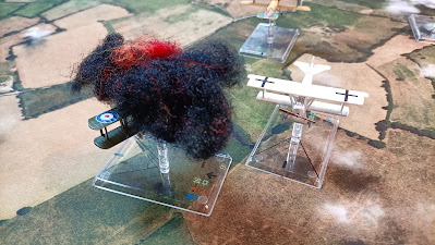 That was when Jimmy joined the game, only to be shot down by Andy. At that moment, Tim's two-seater plane left the battlefield. The Entente had won the first part of the game. Now we were entering the second part, which focused on dominating the skies. The Entente still held the upper hand in the air.